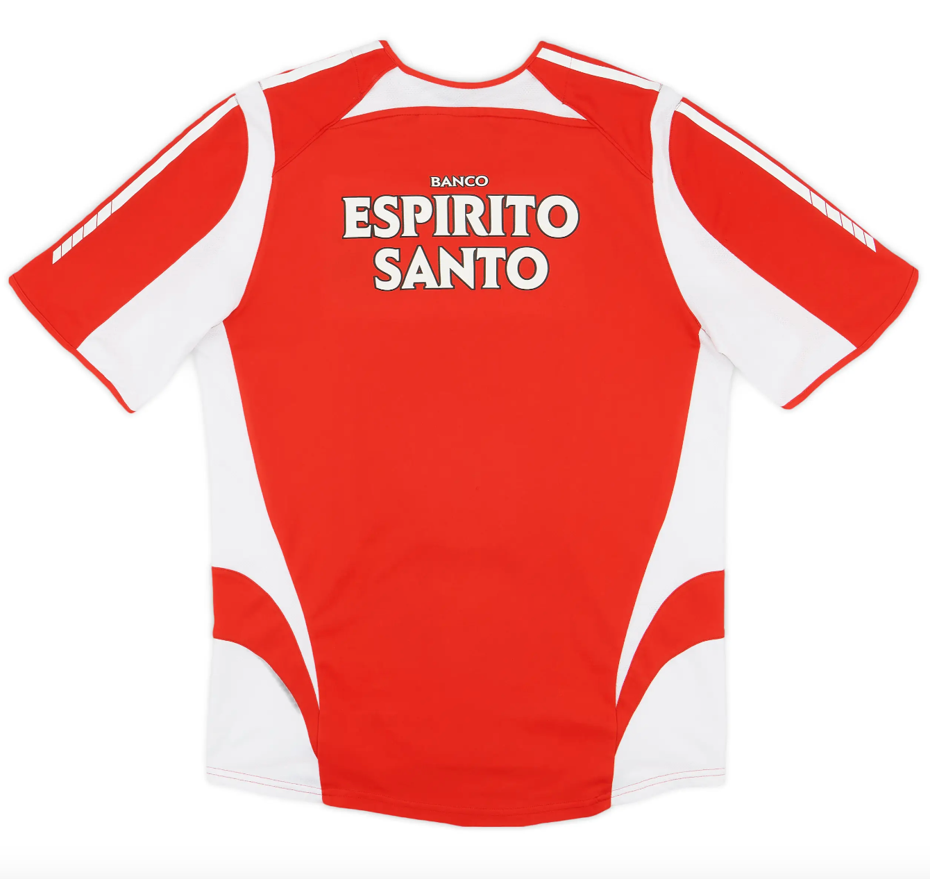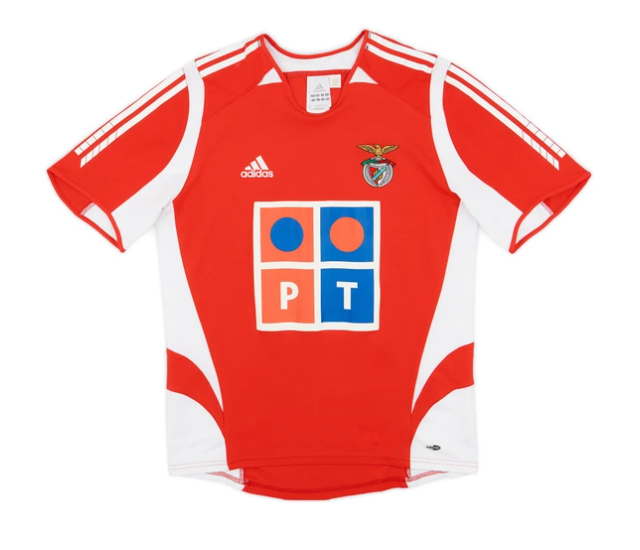 The Benfica 2005-06 home kit, made by Adidas, featured the club’s classic red with white accents and celebrated their status as reigning Portuguese champions. It was worn during a memorable UEFA Champions League run, where Benfica eliminated Manchester United and Liverpool before falling to Barcelona in the quarter-finals. The kit remains iconic for representing a strong era in the club’s history.